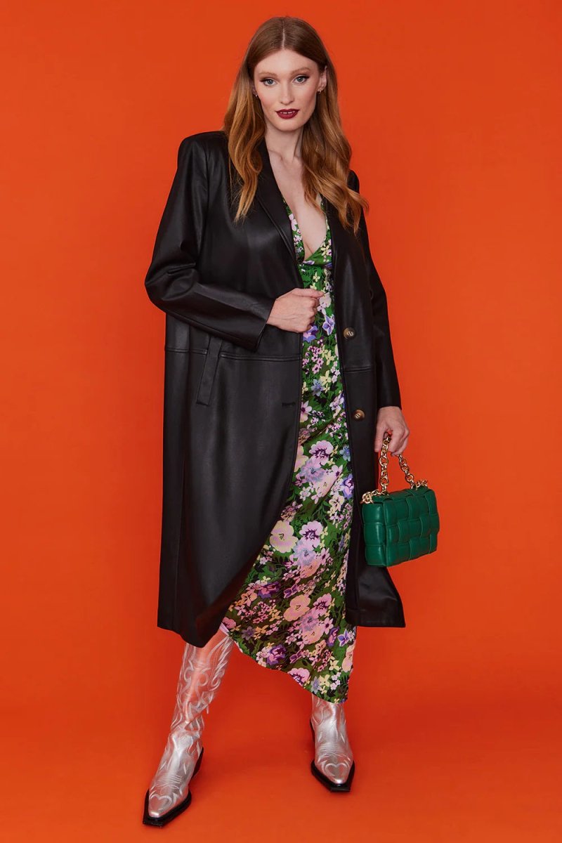 Make a fashion statement with our black eco leather trench coat this winter. From its timeless design to its sustainable materials, this coat has everything you need to stay warm and stylish. Whether you're running errands or attending a special event, this versatile piece will keep you looking chic and feeling comfortable. Elevate your winter wardrobe with a coat that blends fashion and sustainability effortlessly.