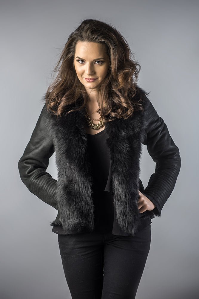 With its classic black color and sleek design, this leather jacket is a versatile piece that can be paired with a variety of outfits. Wear it over a dress for a night out, or style it with jeans and a t-shirt for a more casual look. The merino fur collar adds a touch of luxury to any outfit.