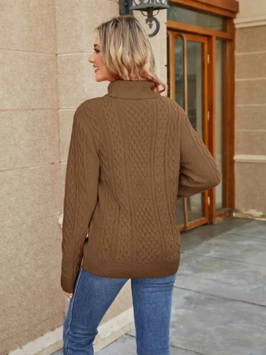 Cable-Knit Mock Neck Sweater