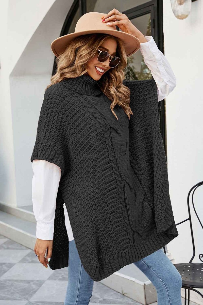 Cable-Knit Turtleneck Slit Sweater