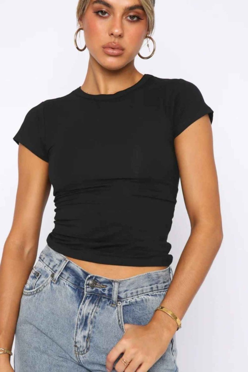 Sizing category: Regular Pattern type: Solid Style: Casual Features: Basic style Neckline: Round neck Length: Regular Sleeve length: Short sleeves...
