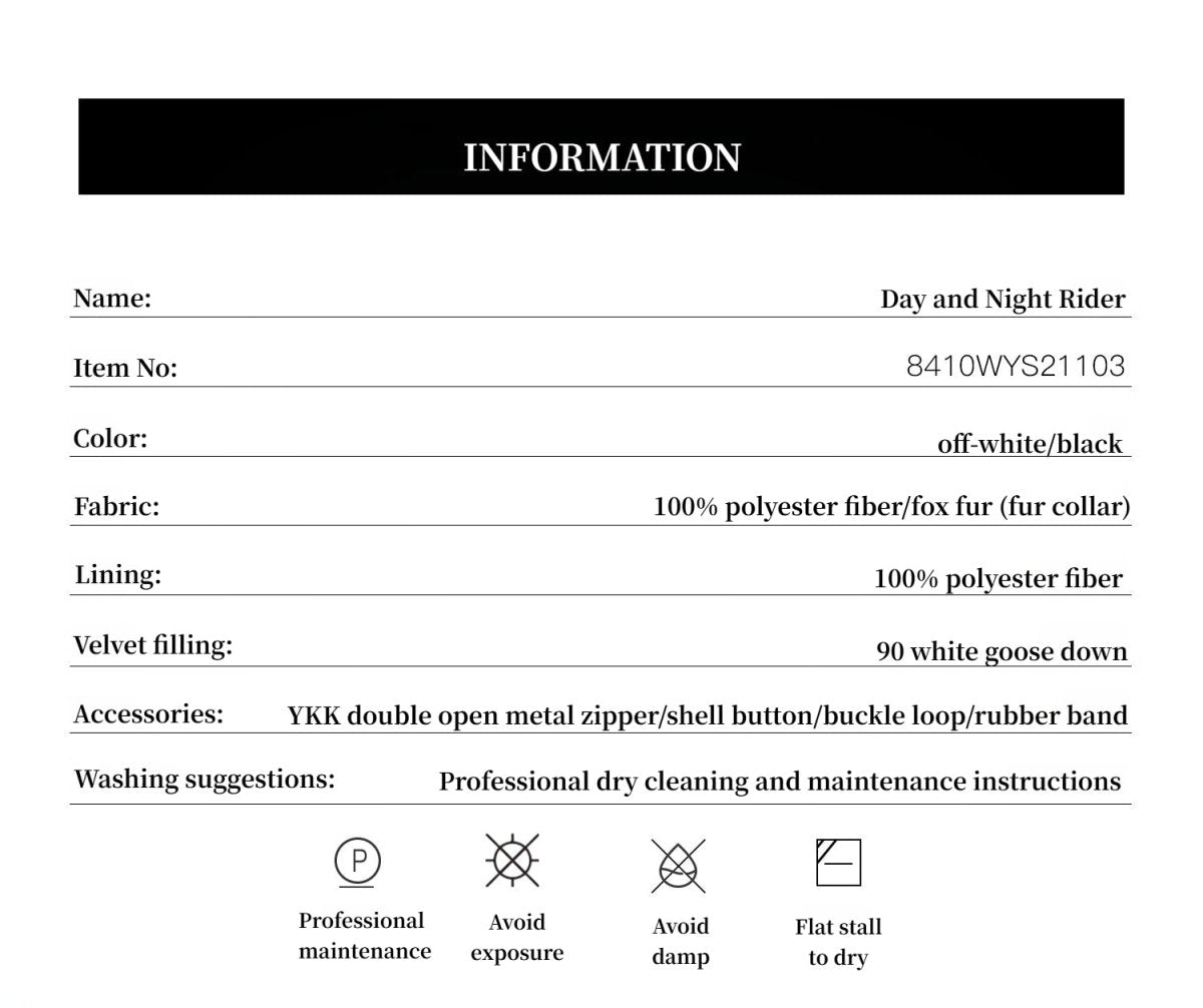 Fireladyfur Women's Detachable Contrasting Fox Fur Collar Down Jacket"Day and Night Rider"