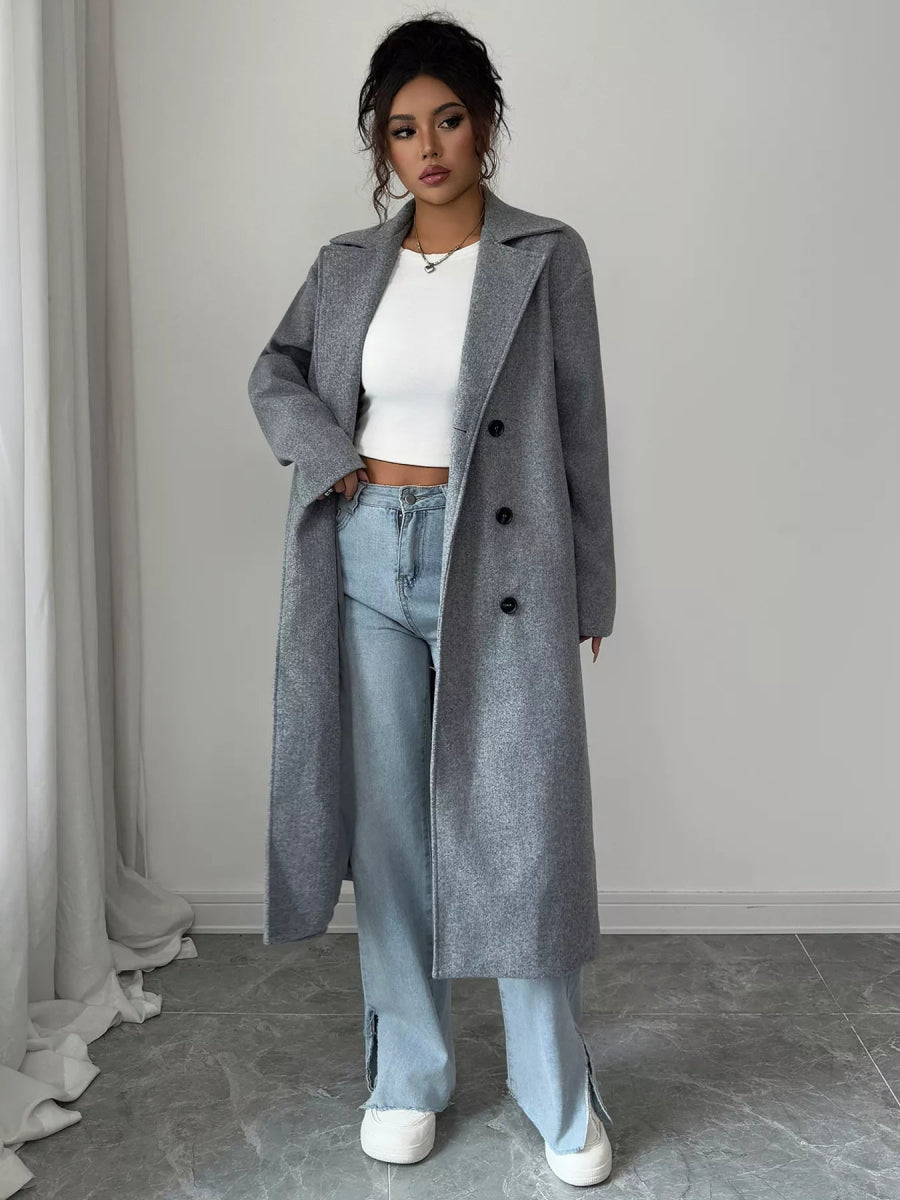 Featuring a double-breasted button closure and functional pockets, the Double-Breasted Longline Coat merges style with convenience, allowing you to carry small essentials while adding a structured, tailored look.