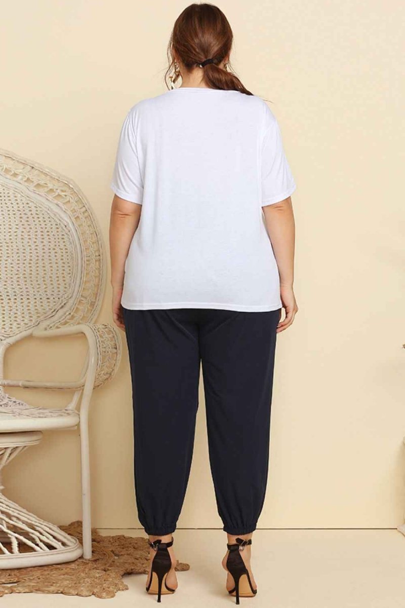 Graphic Tee and Belted Paperbag Joggers Set