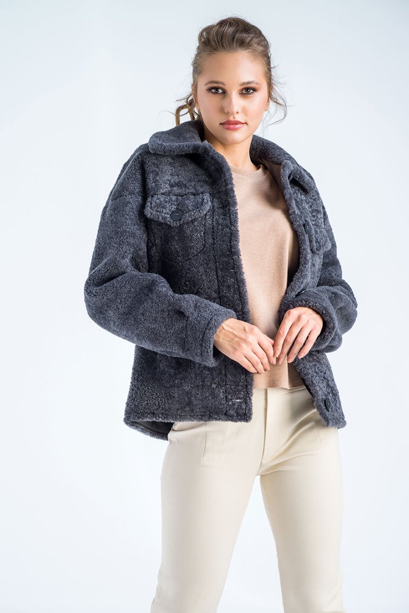 Gray Natural Sheepskin Shearling Jacket