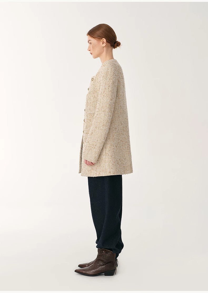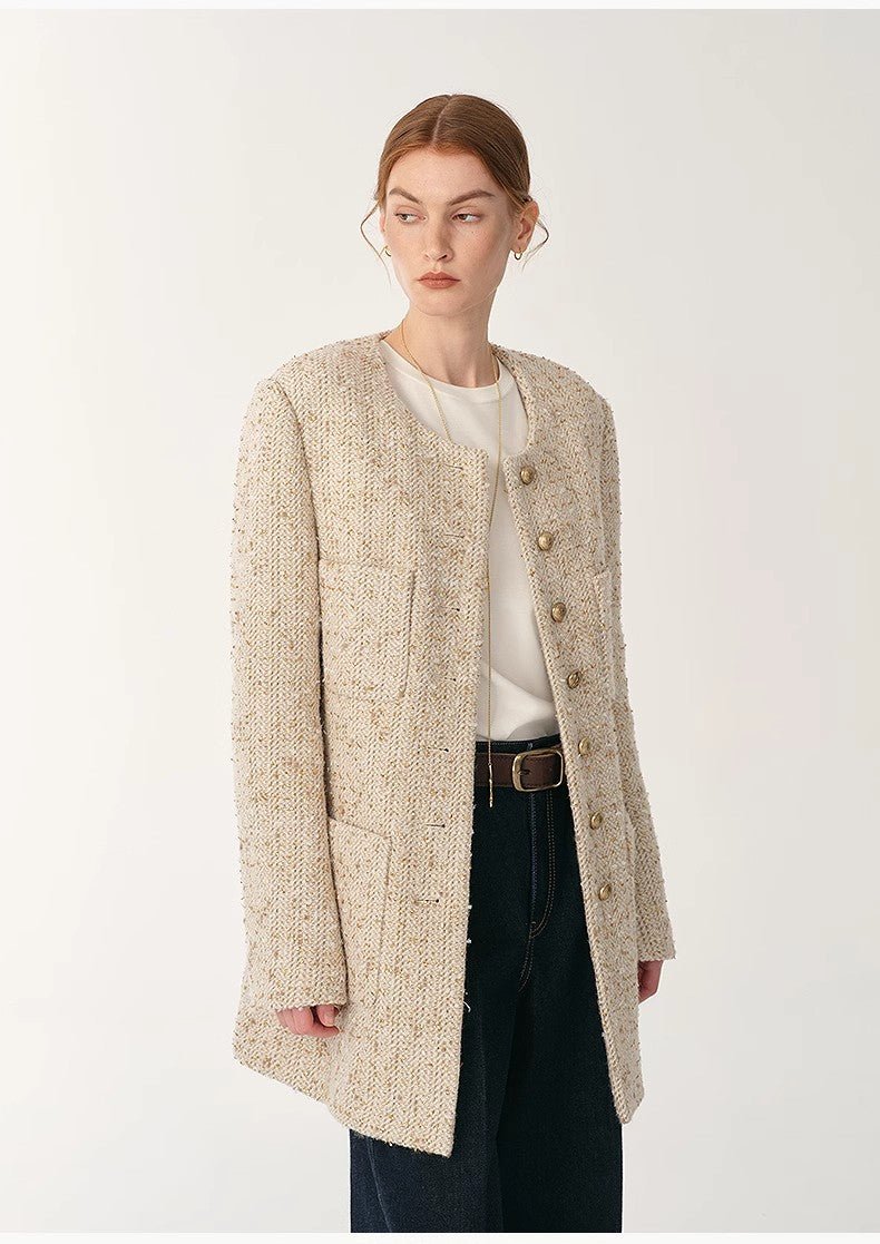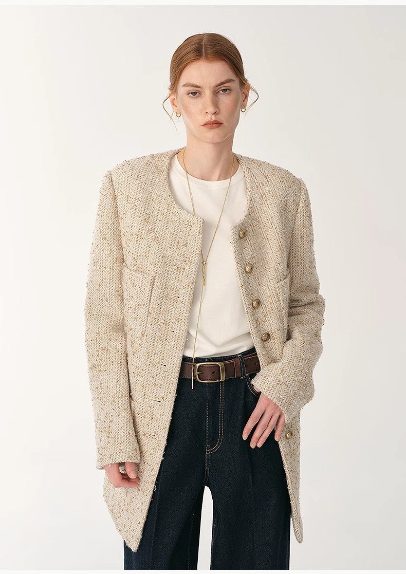 Women’s Heavy Wool Tweed Jacket – Round Neck Slim Fit Chanel-Style Outerwear