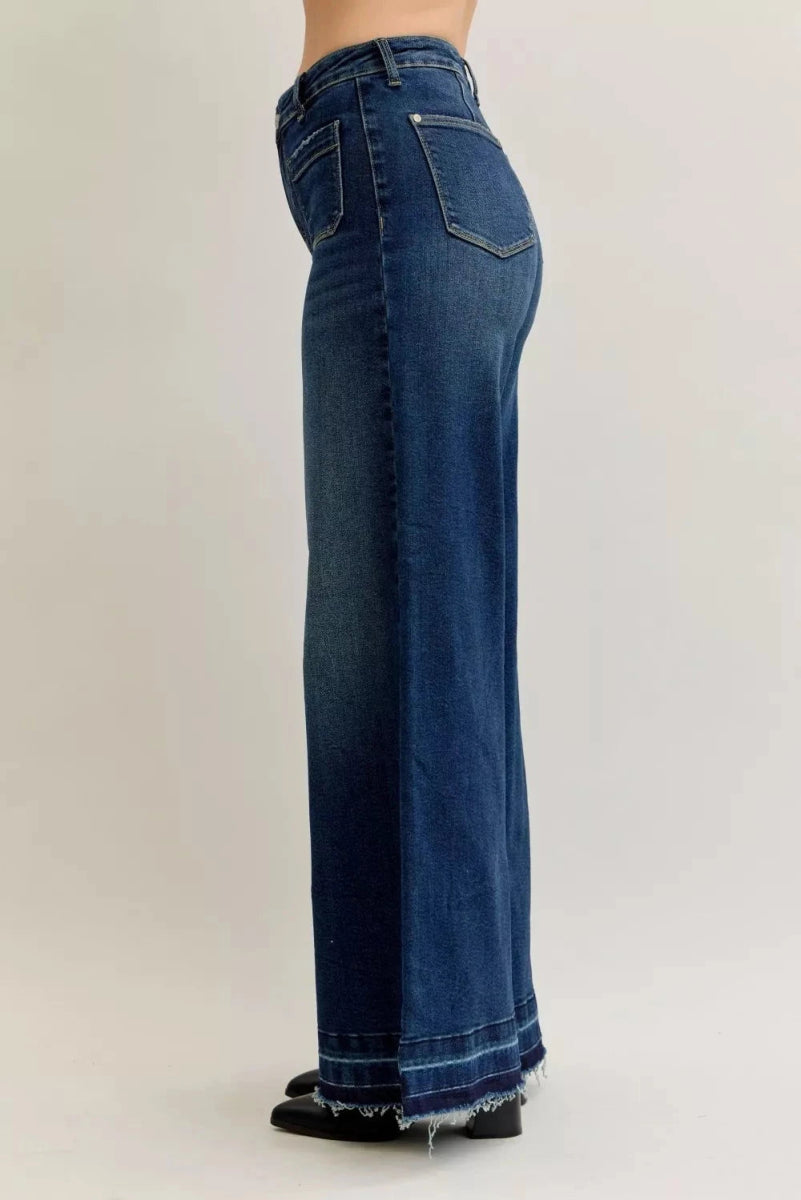 Judy Blue High Waist Palazzo Jeans with Front Patch Pockets