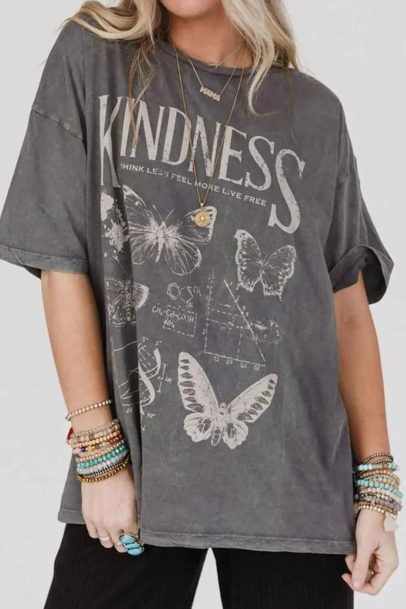 Kindness Butterflies Graphic Mineral Wash Loose Tee