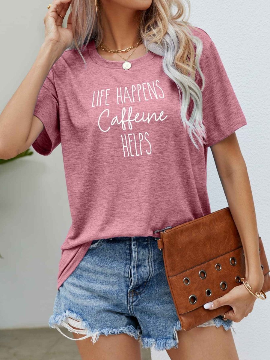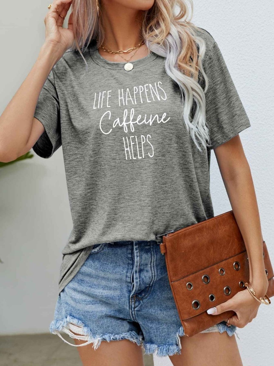 LIFE HAPPENS CAFFEINE HELPS Graphic Tee