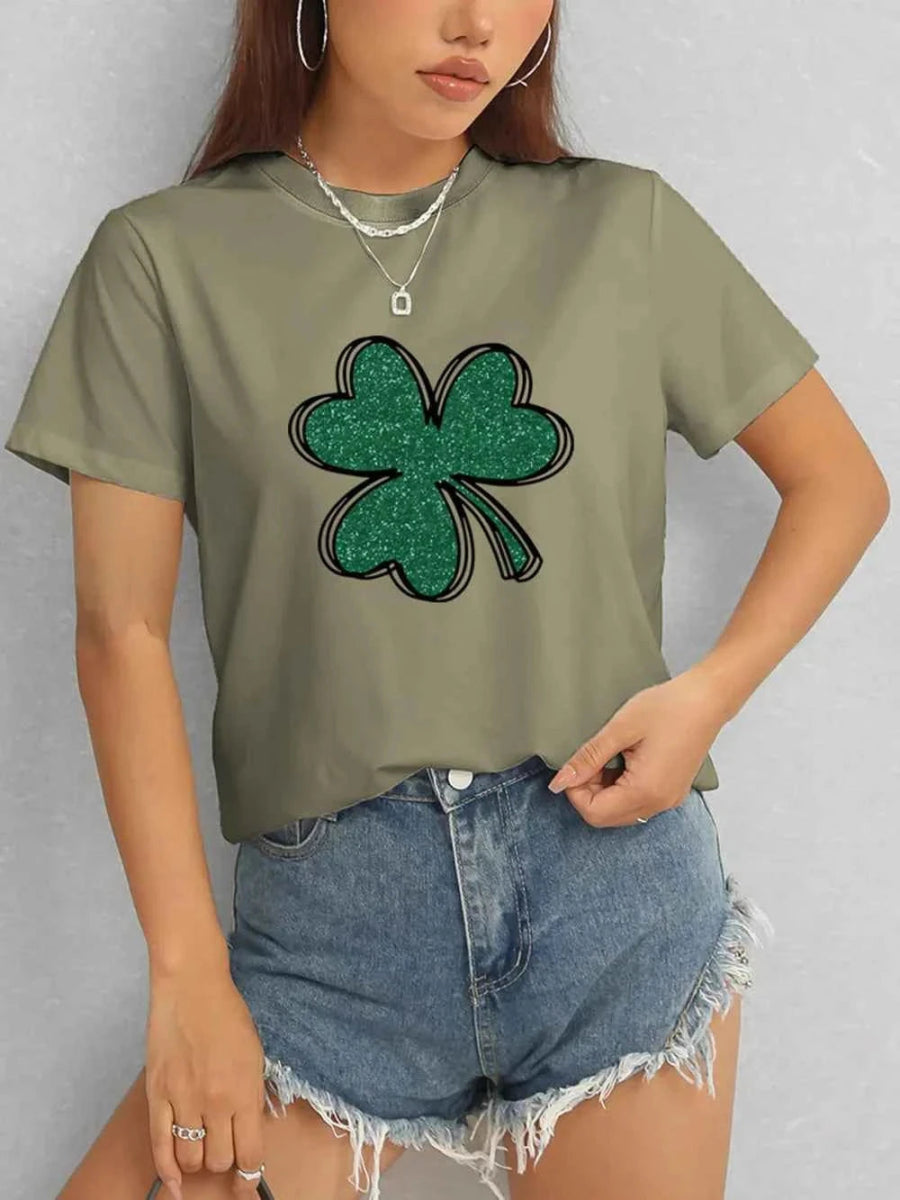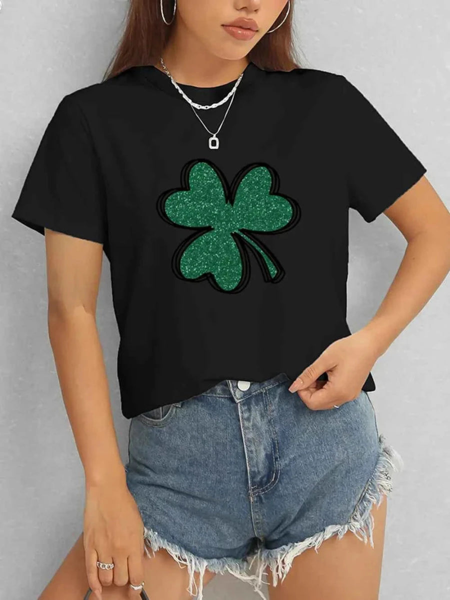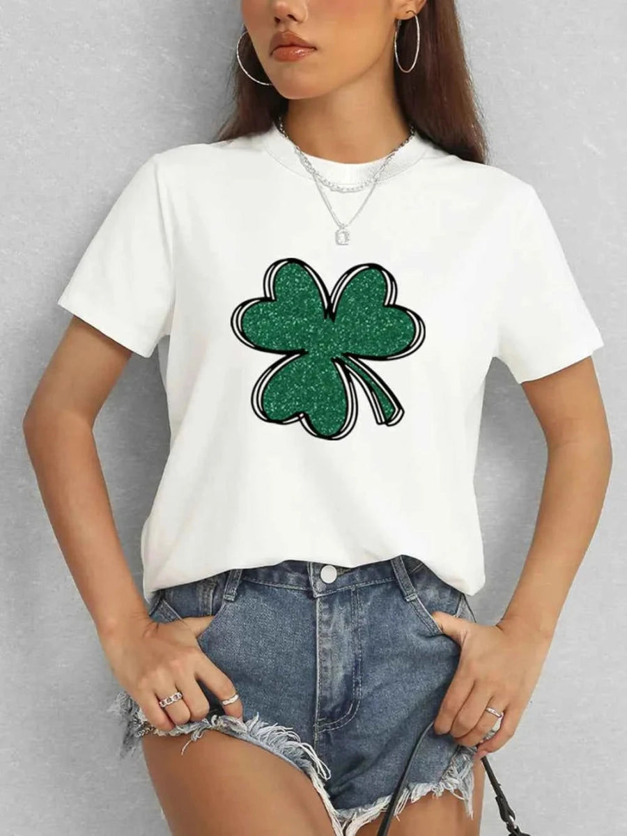 Lucky Clover Round Neck T-Shirt – Casual Comfortable Stretchy Top