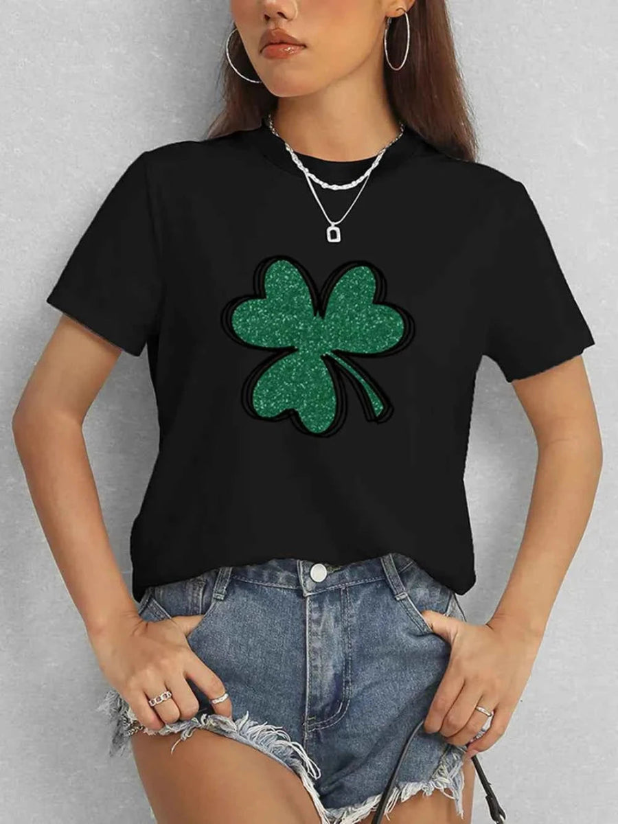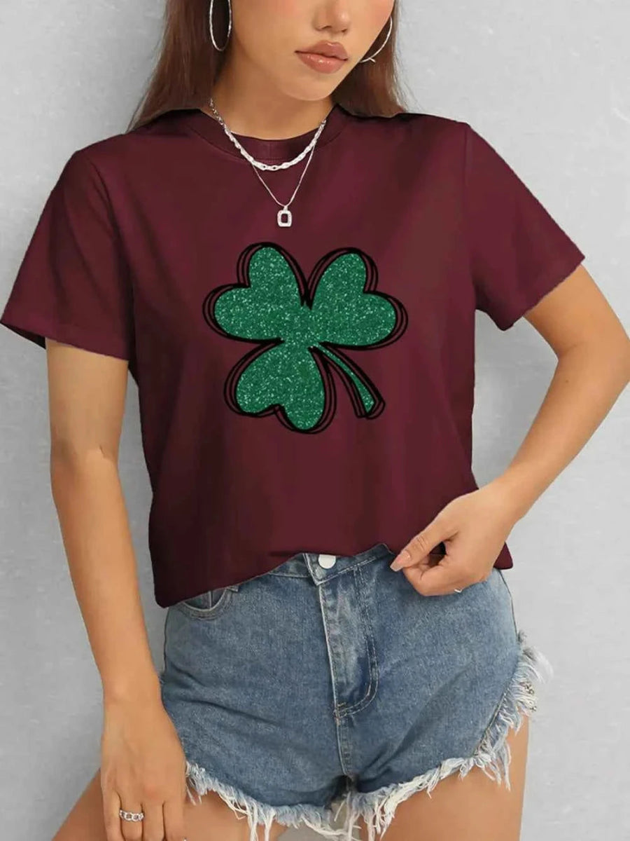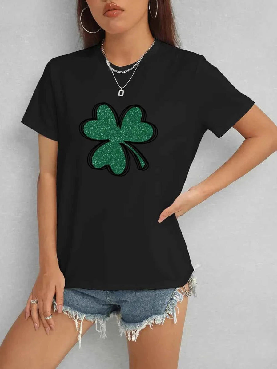 Lucky Clover Round Neck T-Shirt – Casual Comfortable Stretchy Top