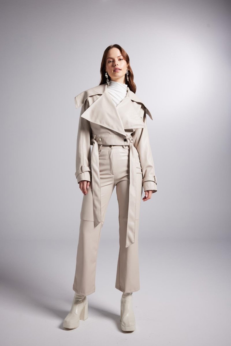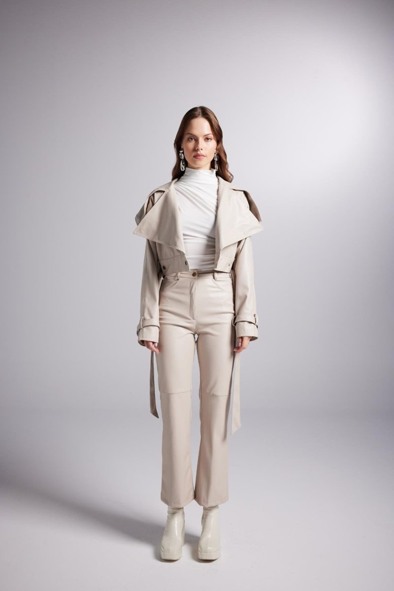 Neeko Beige Faux Leather Cropped Jacket – Trendy Women’s Outerwear