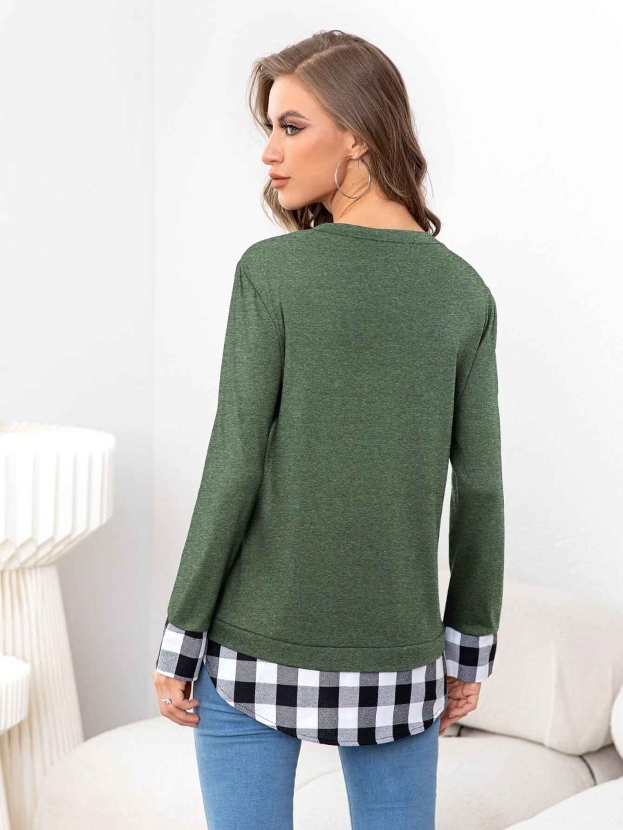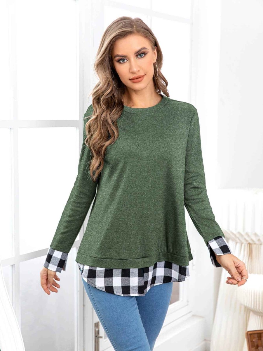 Plaid Round Neck Long Sleeve Tee