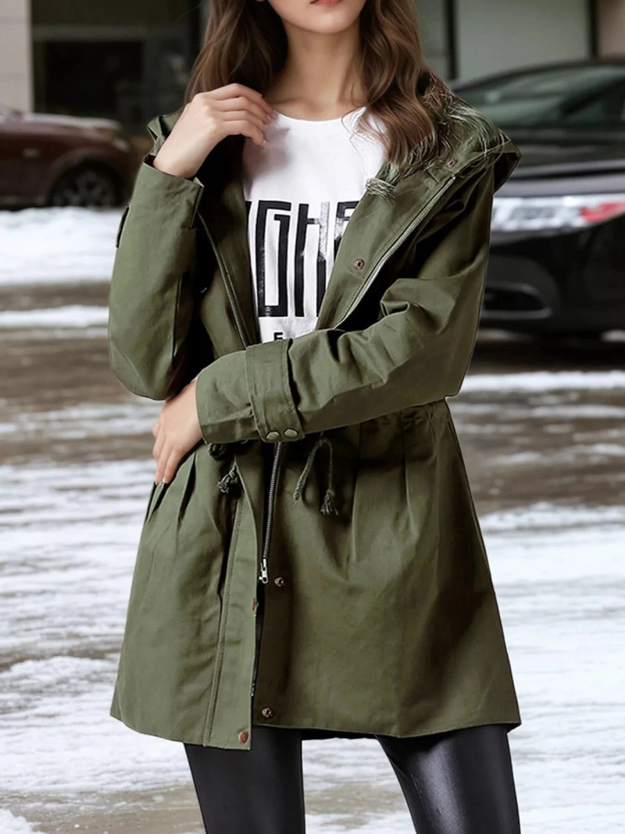 Stay stylish and comfortable with the Plus Size Hooded Drawstring Waist Trench Coat, designed to flatter and provide versatility for everyday wear. Its hooded design offers added protection against wind and light rain.