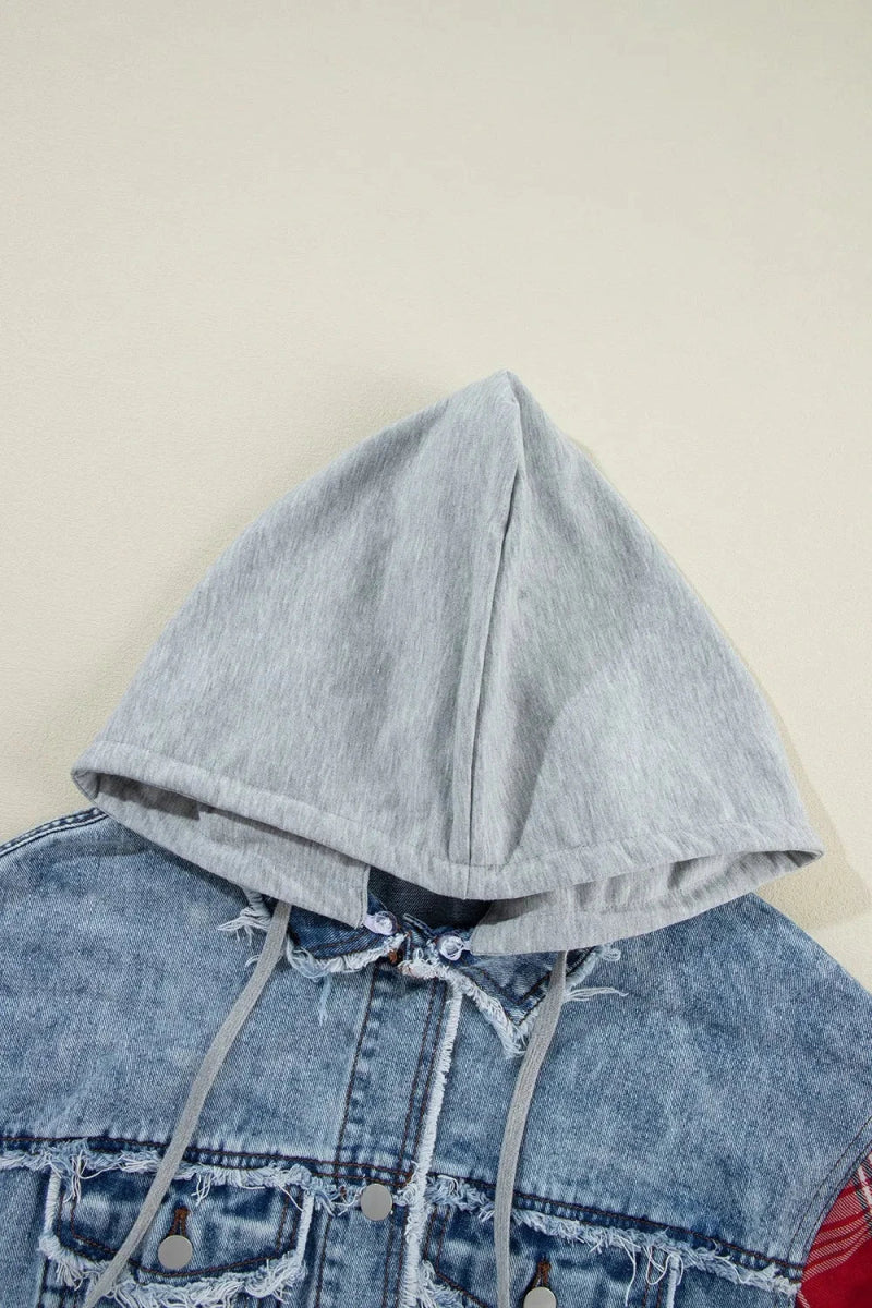 Raw Hem Drawstring Plaid Denim Jacket – Casual Women’s Oversized Jean Jacket