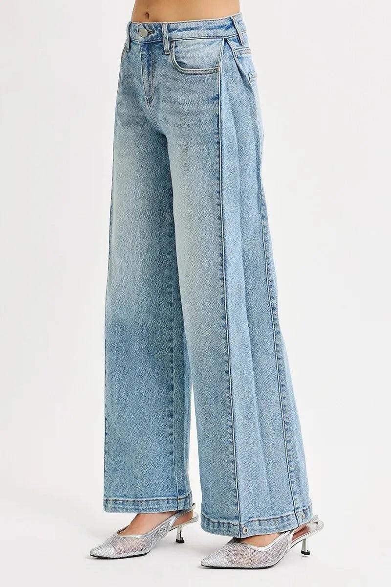 RISEN Mid Rise Wide Barrel Transferable Leg Snap Jeans