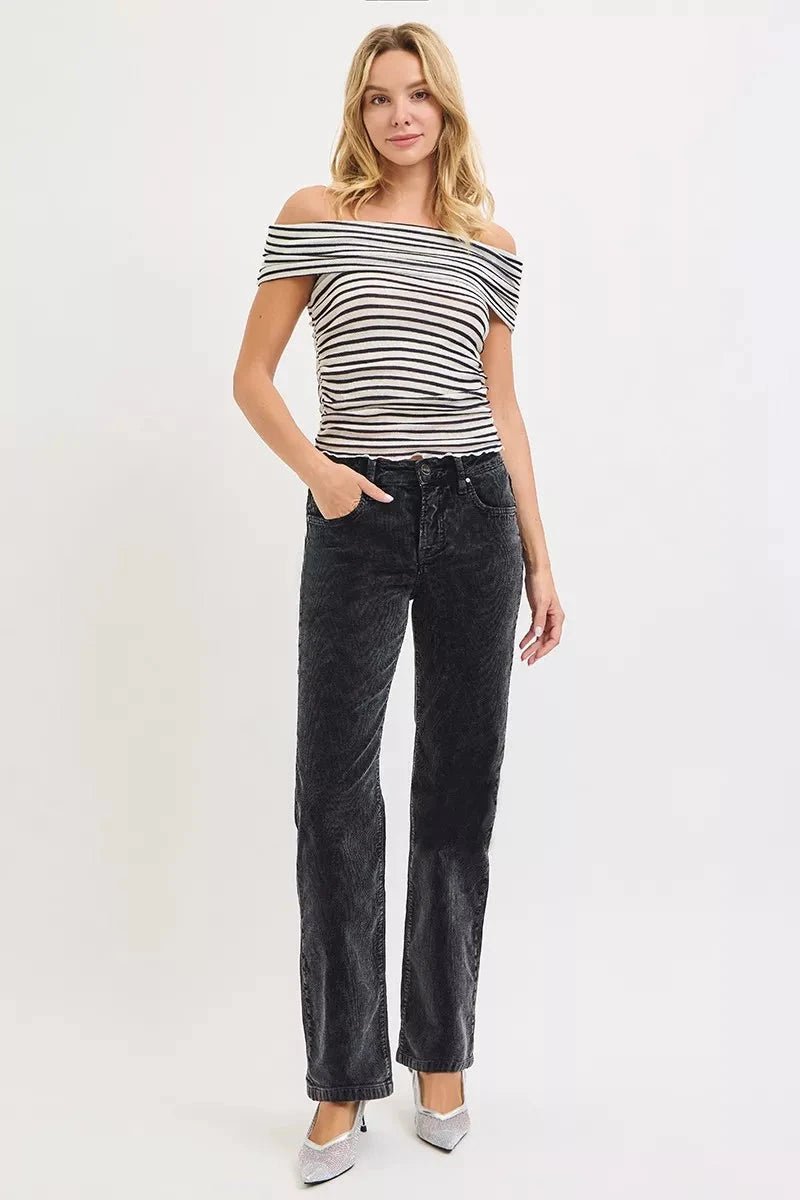RISEN Tummy Control Mid Rise Straight Leg Corduroy Pants