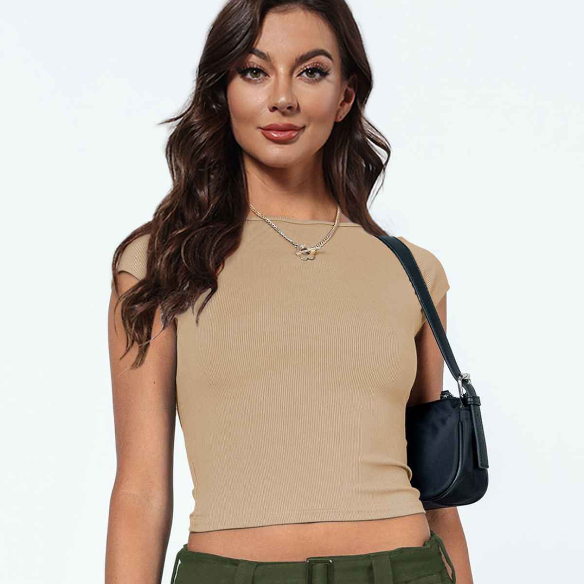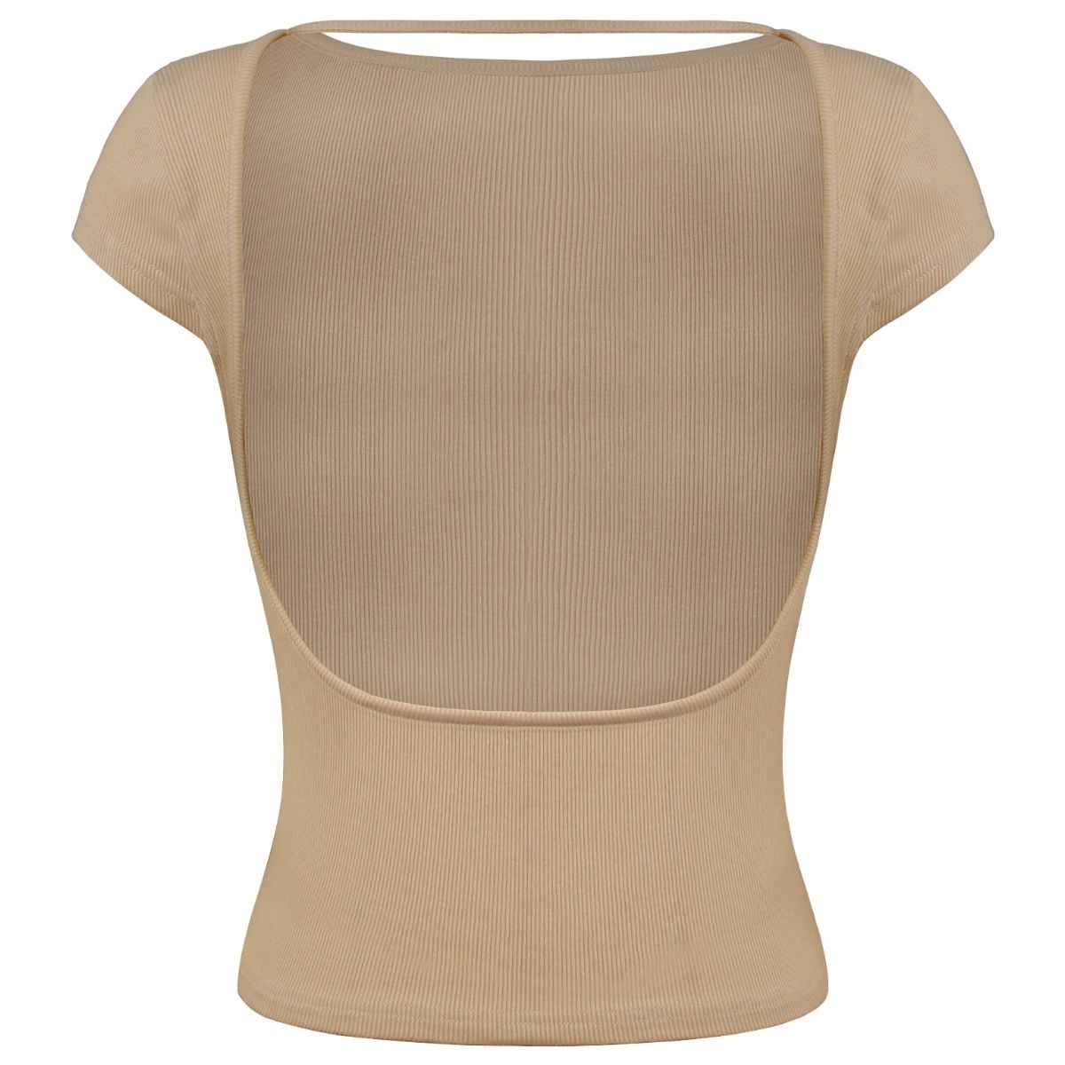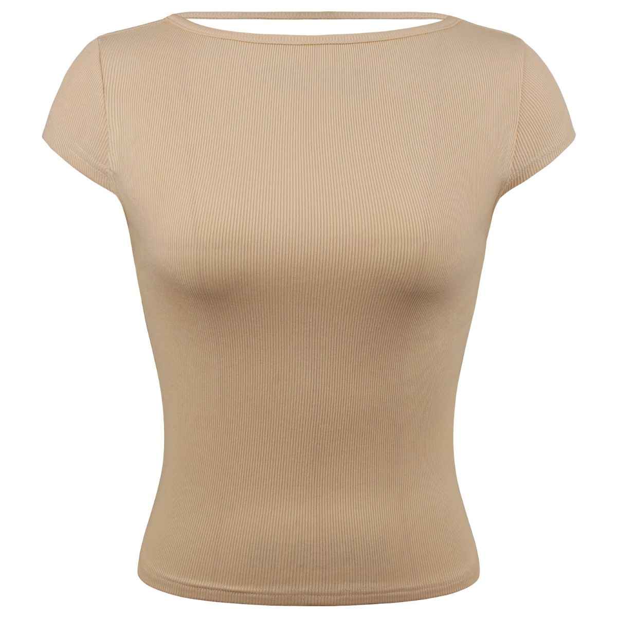 Pattern type: Solid Style: Casual, Chic Features: Backless Neckline: Round neck Length: Regular Sleeve length: Short sleeves Sleeve type: Regular...