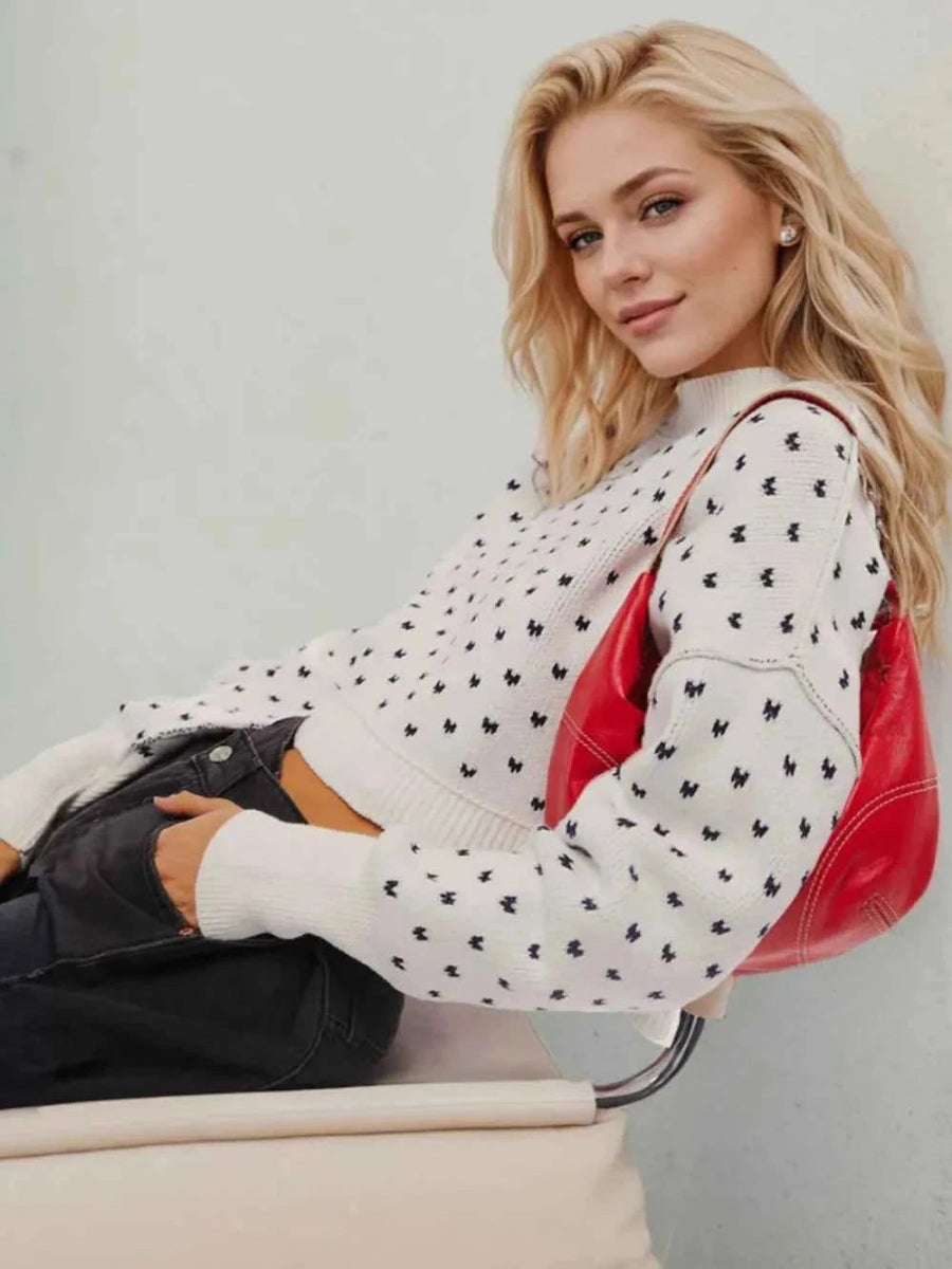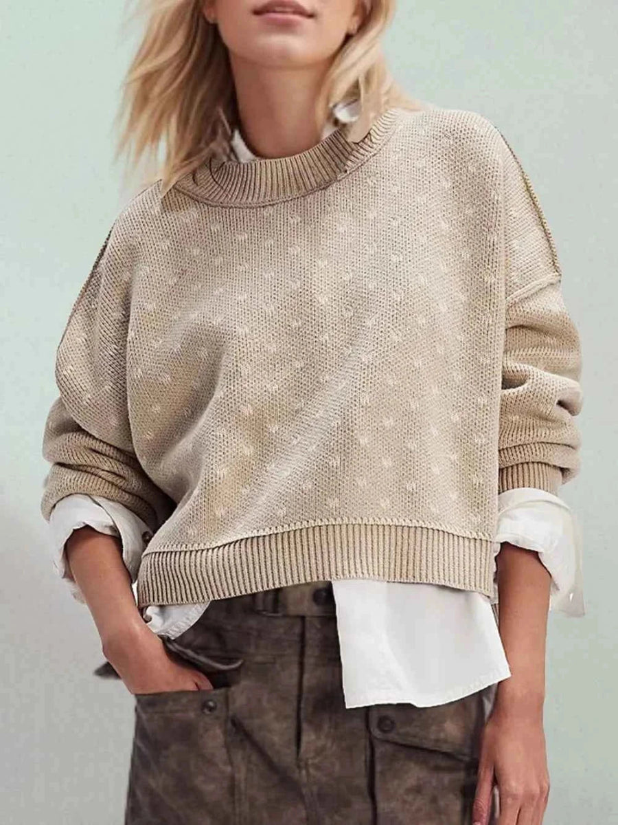 Slit Round Neck Long Sleeve Sweater