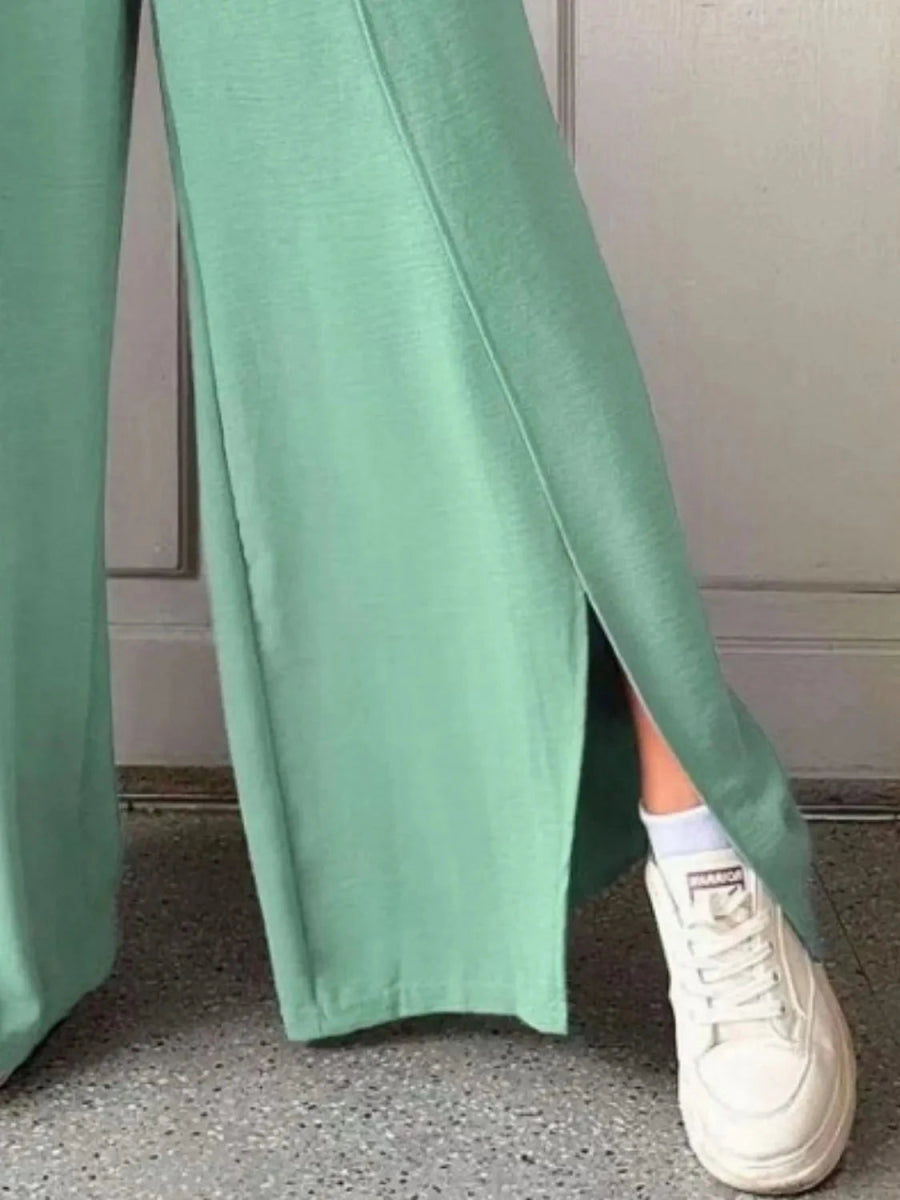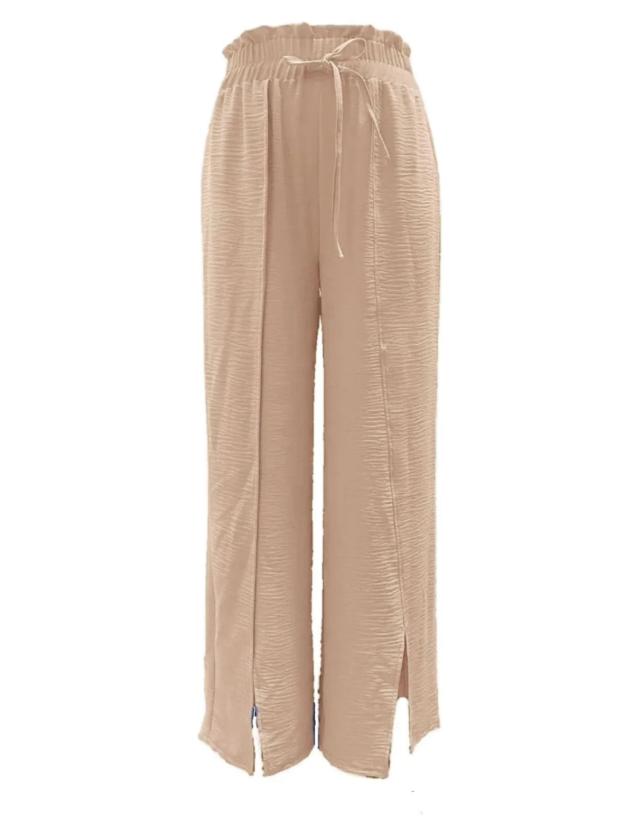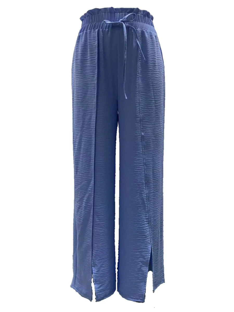 Features: Slit, Frill Material composition: 95% polyester, 5% spandex Care instructions: Machine wash cold. Tumble dry low. Imported Product Measurements...