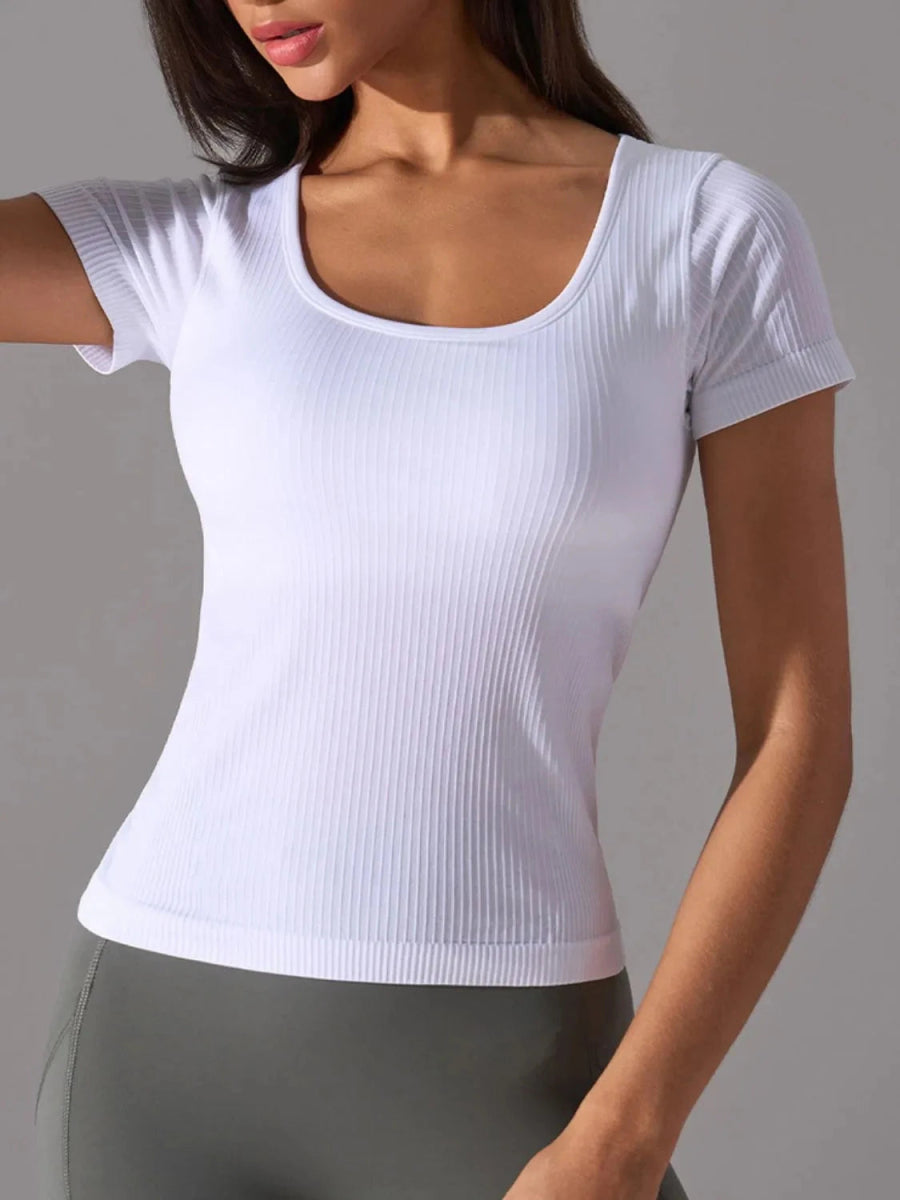 Square Neck Active T-Shirt with Detachable Chest Pads