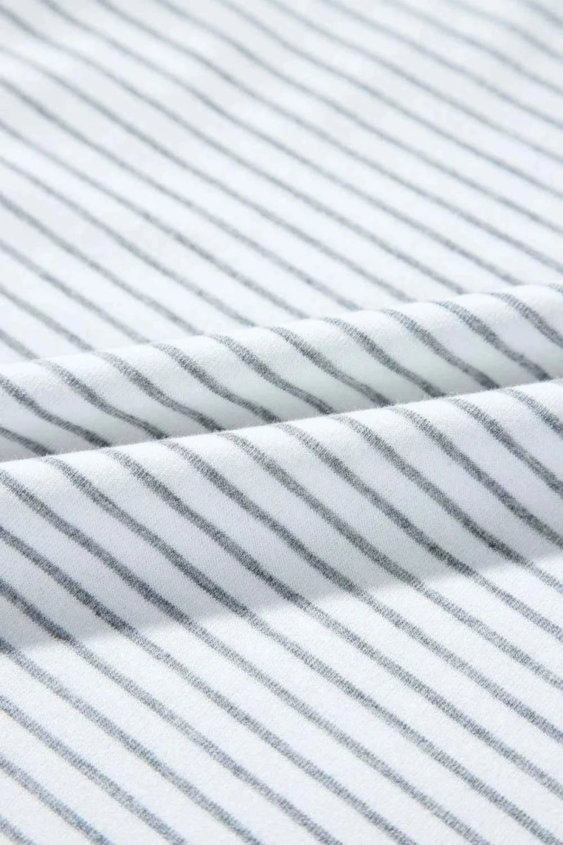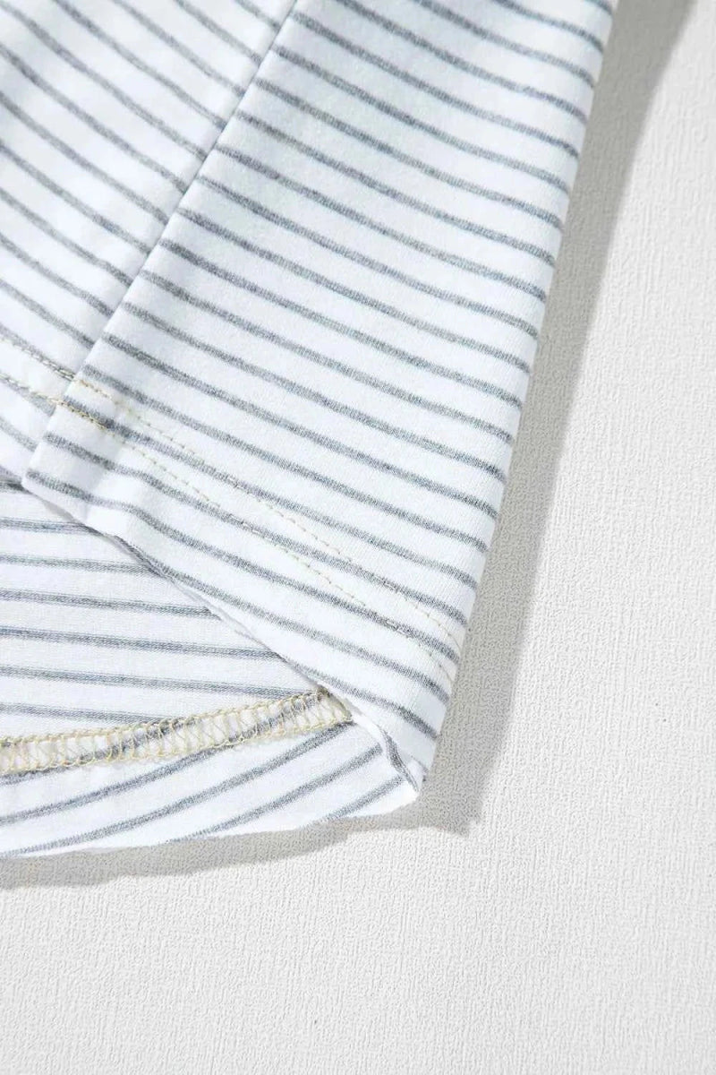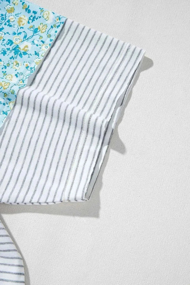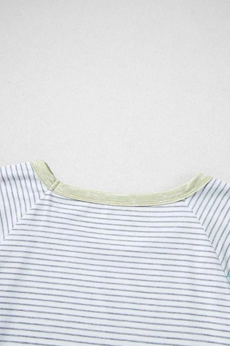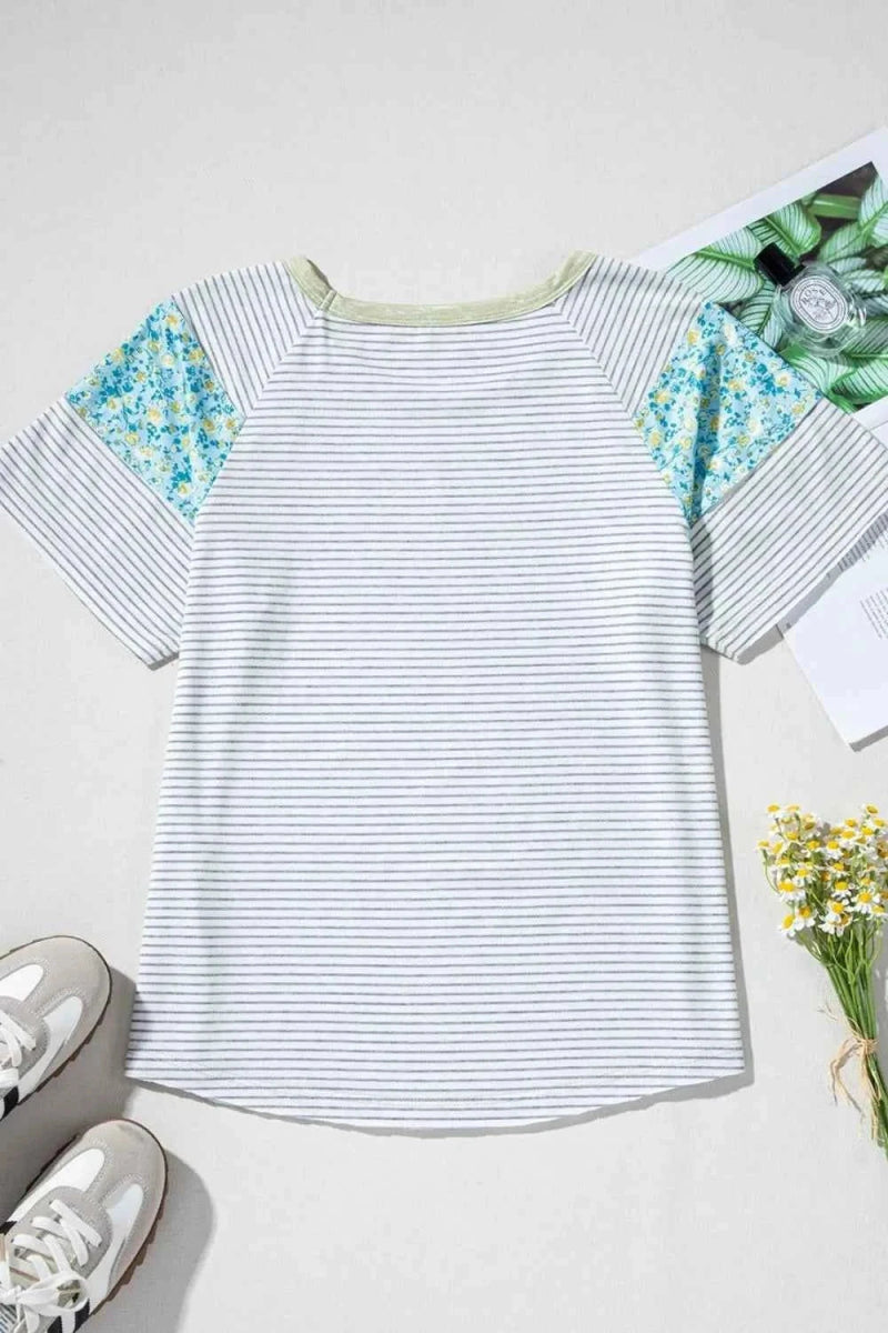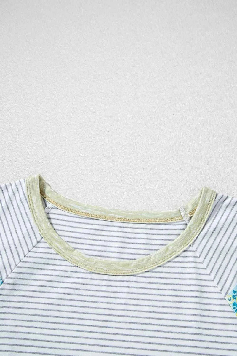 Stripe Floral Insert Sleeves Contrast Round Neck Tee