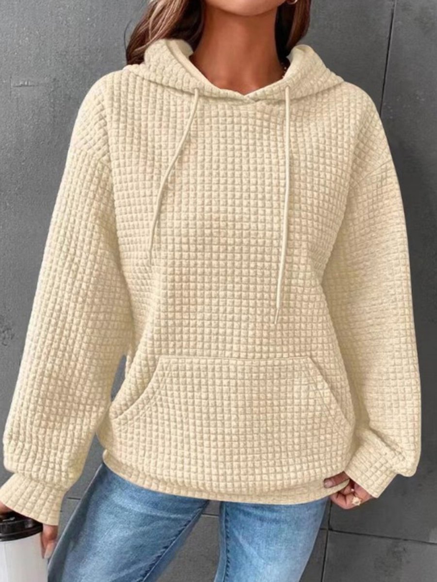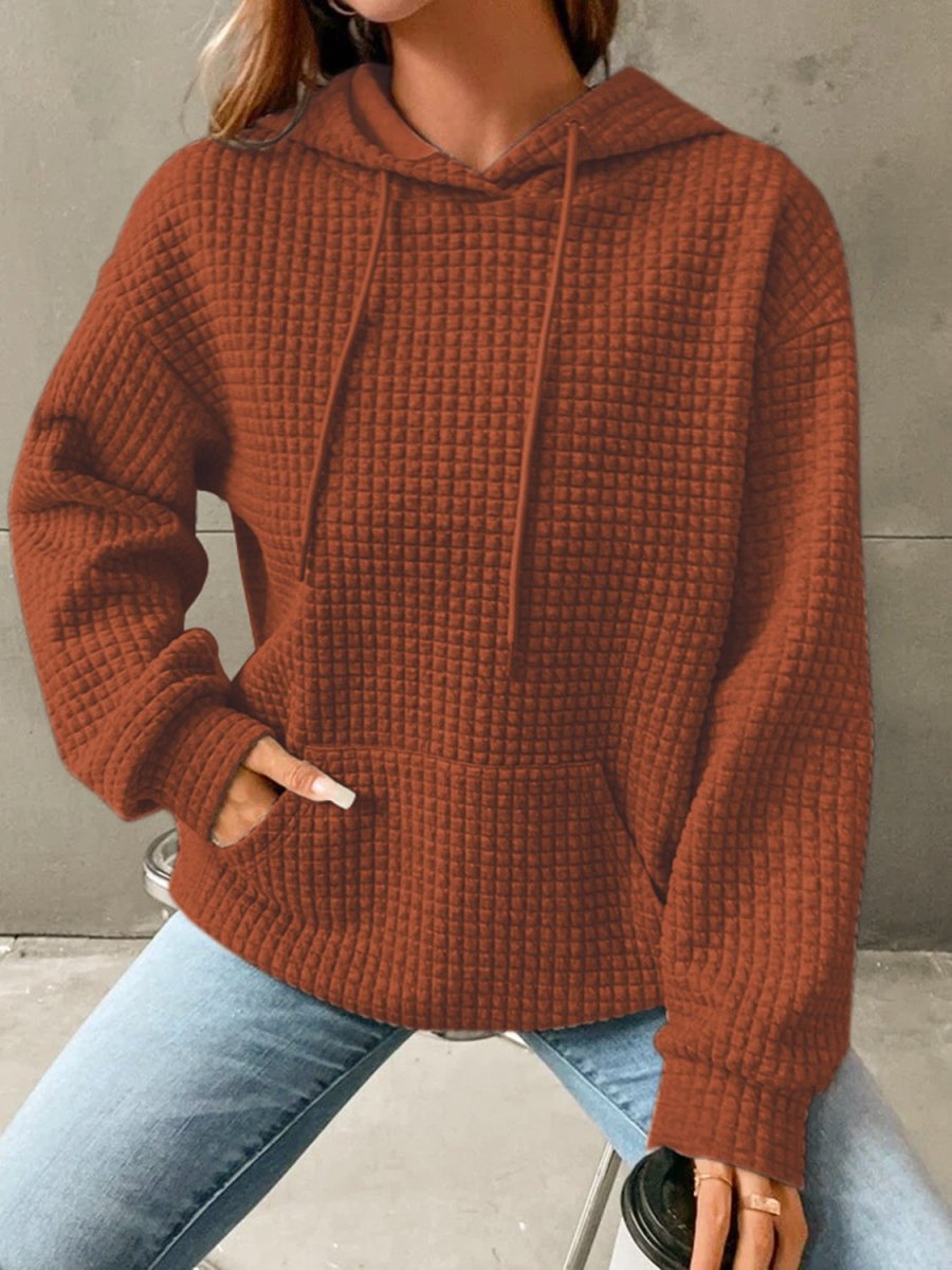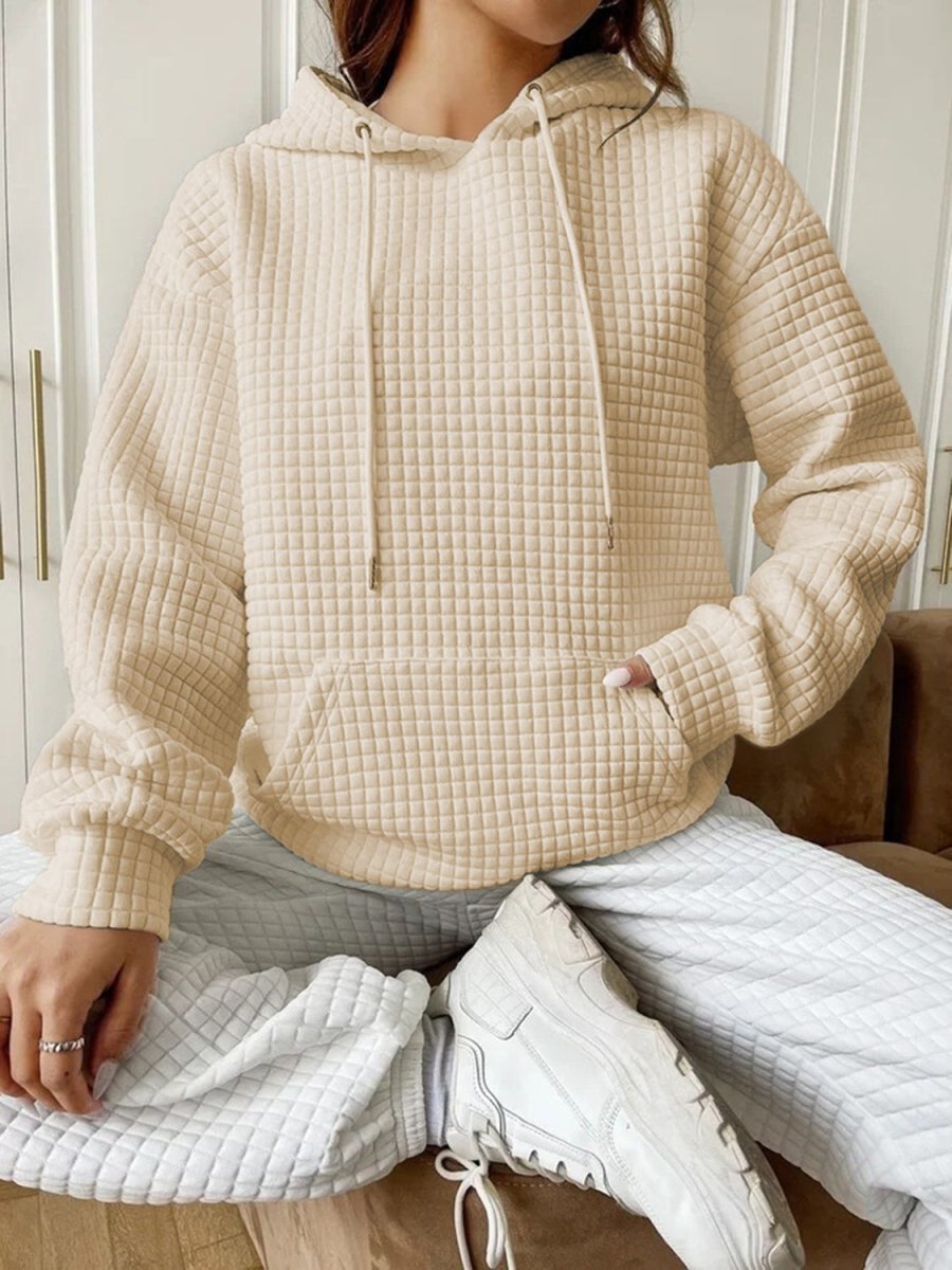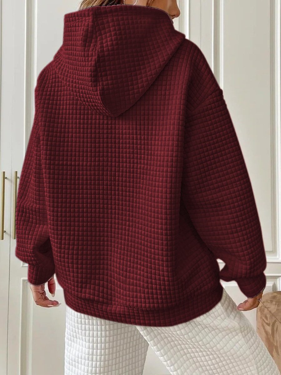 Textured Drawstring Drop Shoulder Hoodie