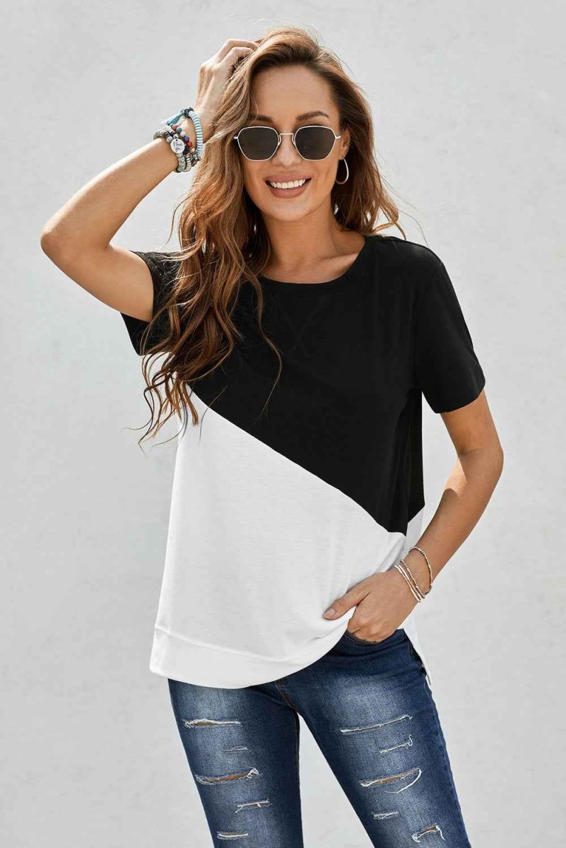 Sizing category: Regular Picture style: Outdoors Pattern type: Two-tone Style: Casual, chic Features: Basic style Neckline: Round neck Length: Regular...