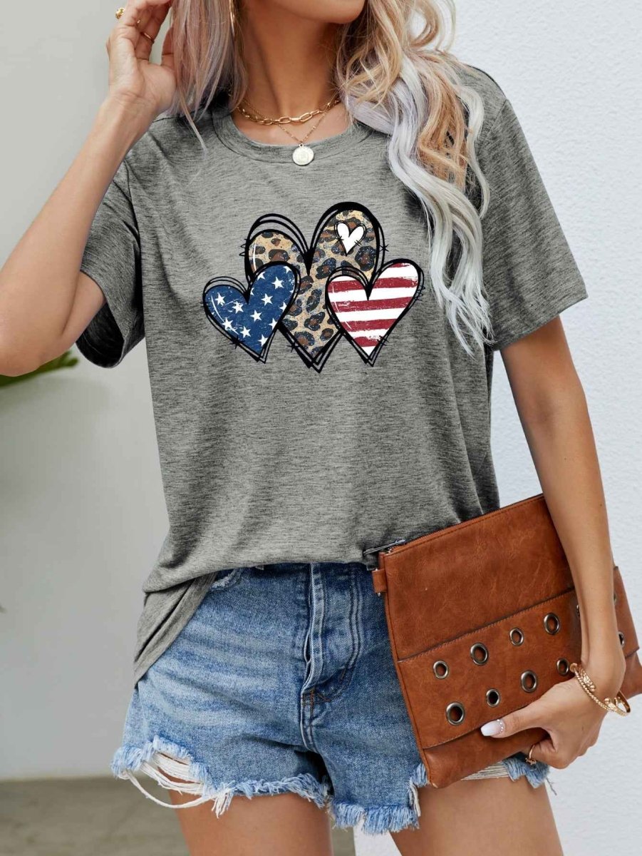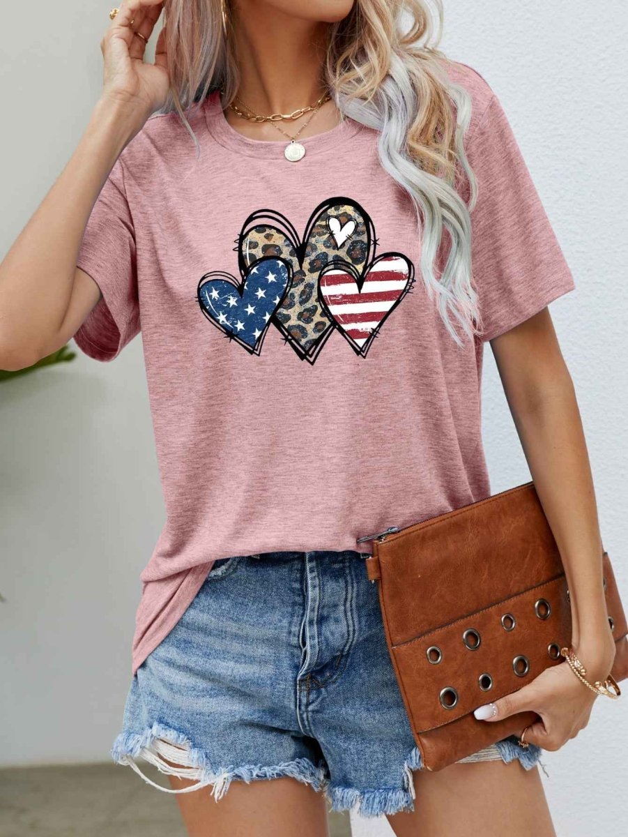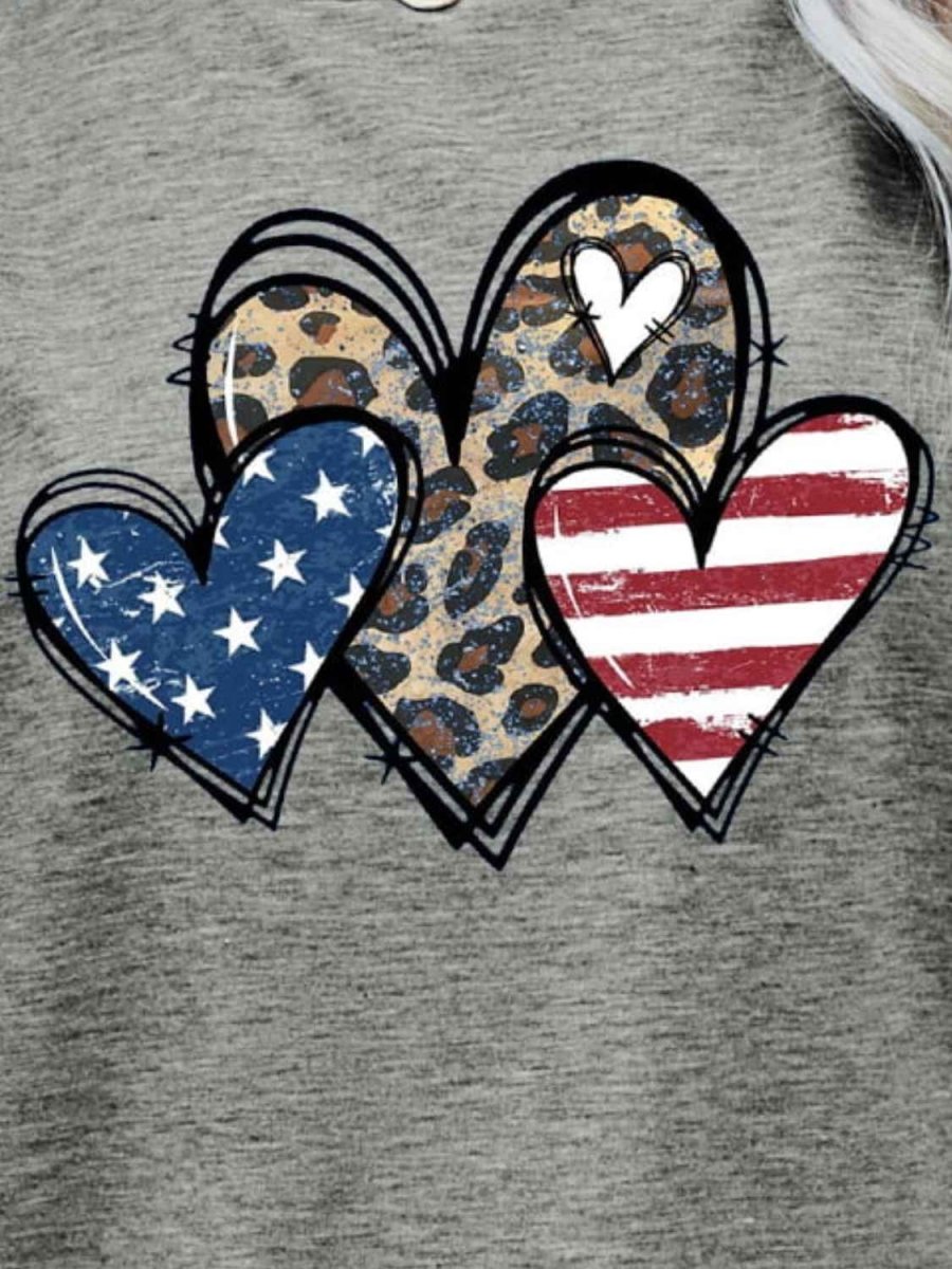 US Flag Leopard Heart Graphic Tee