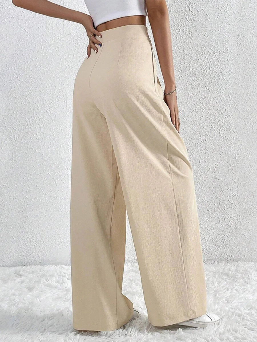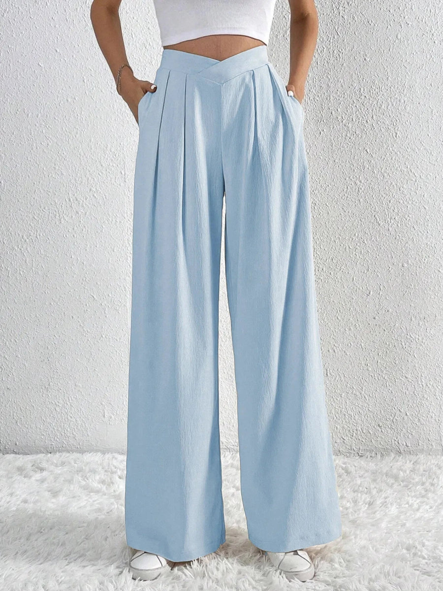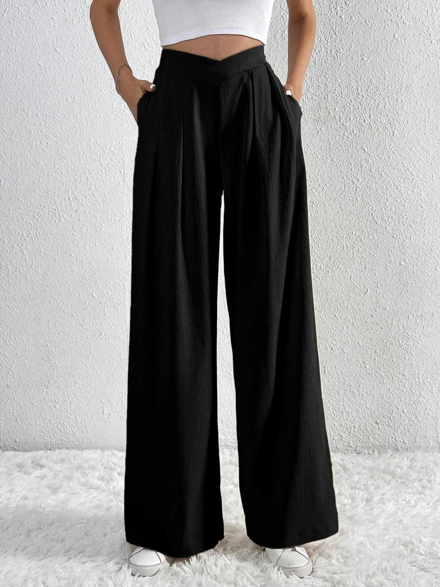 These stunning V-Waisted Ruched Front Wide Leg Pants feature an elegant high-waisted design with distinctive ruched detailing at the front...