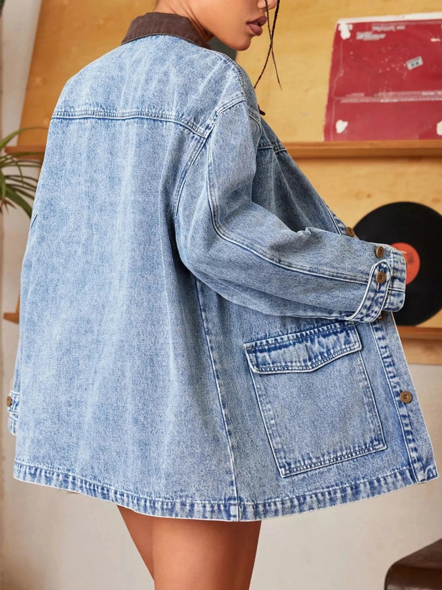 Vintage Wash Denim Jacket with Contrast Collar