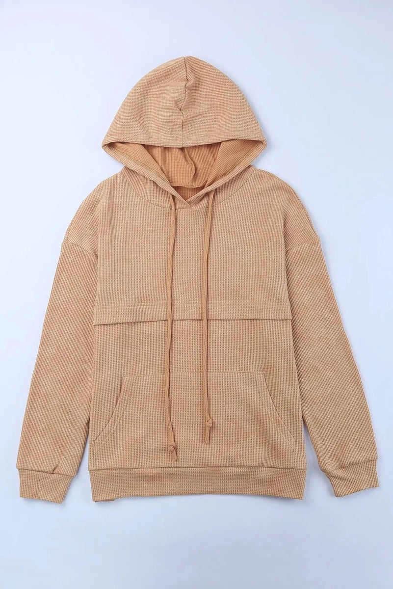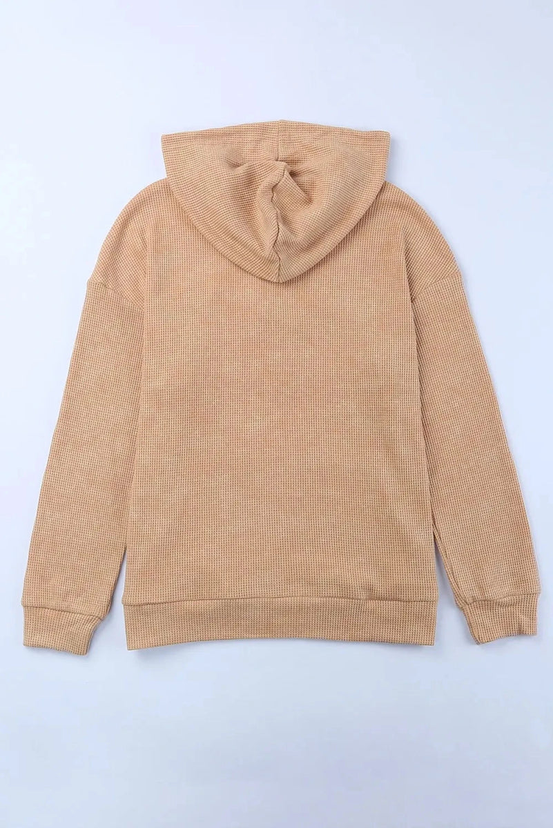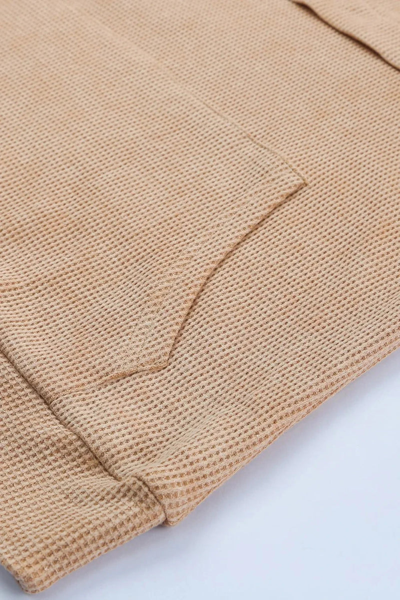 Waffle-Knit Drawstring Kangaroo Pocket Hoodie