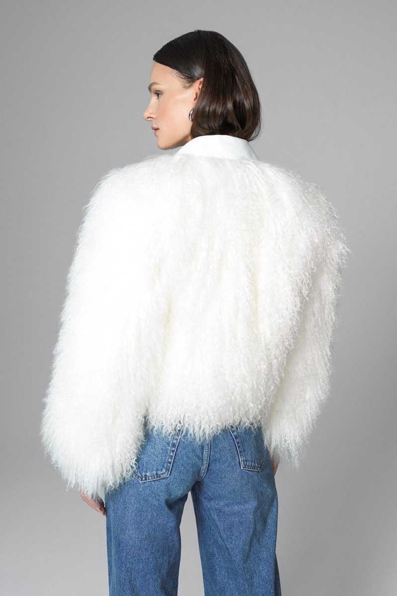 White Natural Mongolian Shearling Jacket – Luxury Winter Fur Outerwear