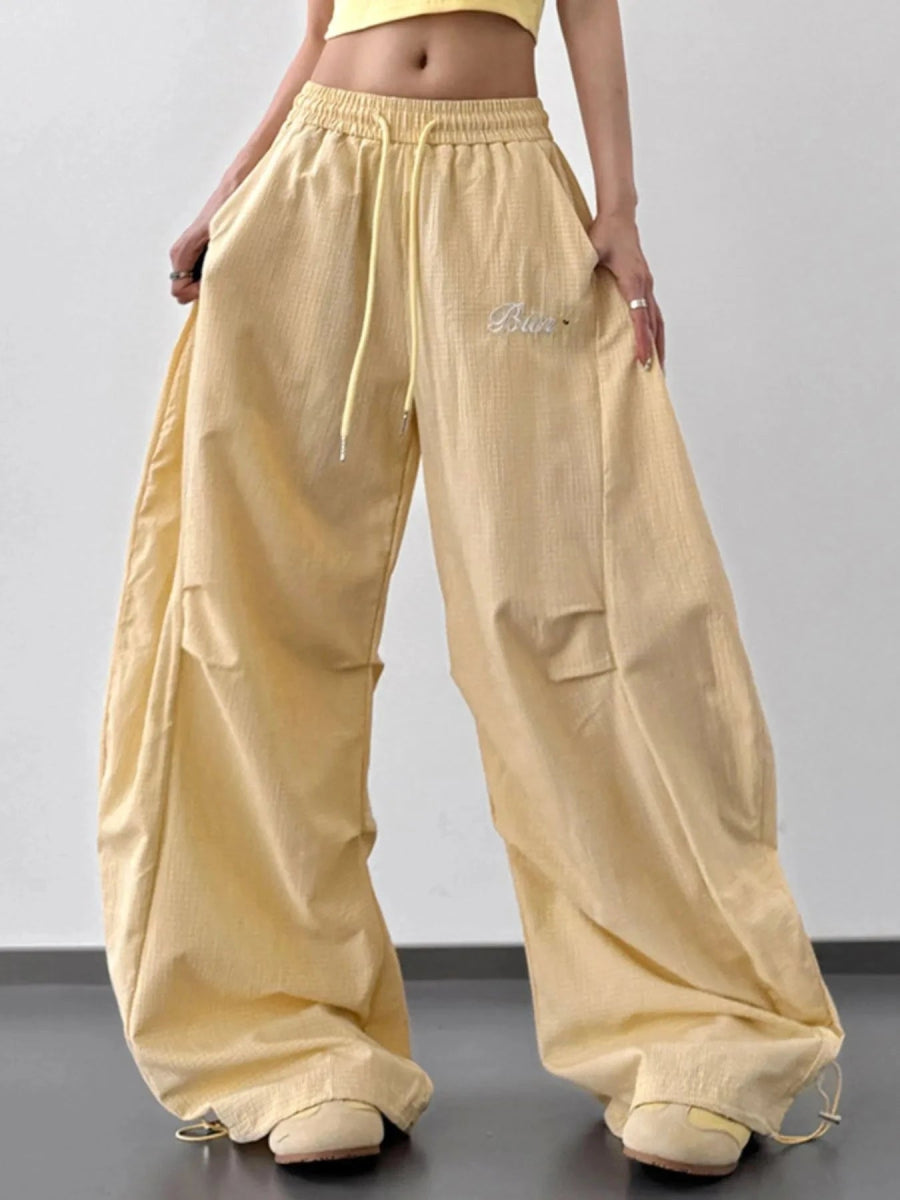 Wide Leg Drawstring Casual Pants