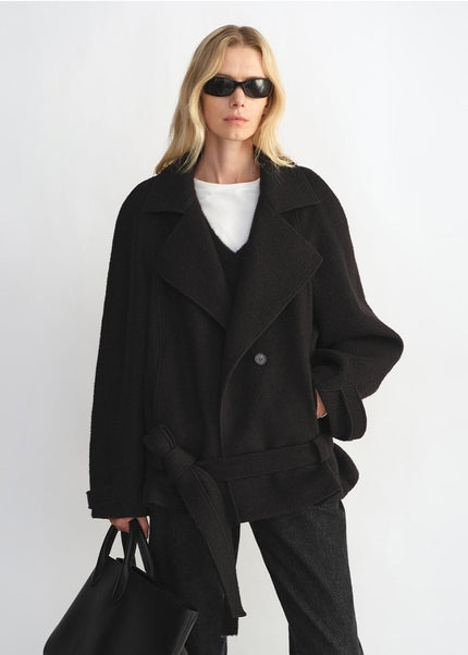 “Warm Cocoon” Italian Herringbone Wool Short Coat – Classic Lapel Women’s Jacket