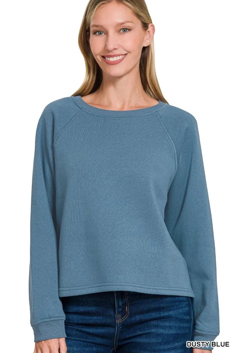 Zenana Fleece Raglan Round-Neck Sweatshirt