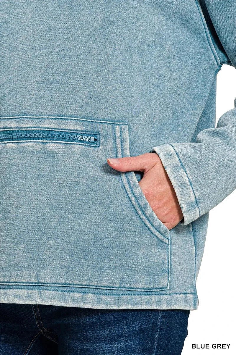 Zenana Fleece Washed High Neck Kangaroo Pocket Sweatshirt